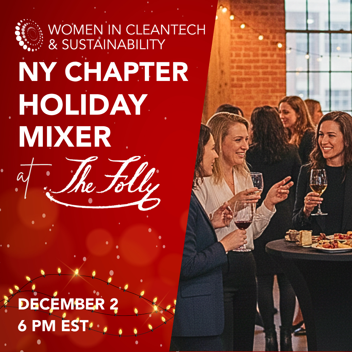 Celebrate an incredible year of innovation and impact with the NYC Chapter of Women in CleanTech & Sustainability at our 2025 Holiday Mixer! Join us at The Folly for an evening of connection, cheer, and reflection on all we’ve accomplished together. Enjoy cocktails, mingle with fellow sustainability leaders, and toast to a bright, green future in 2026.