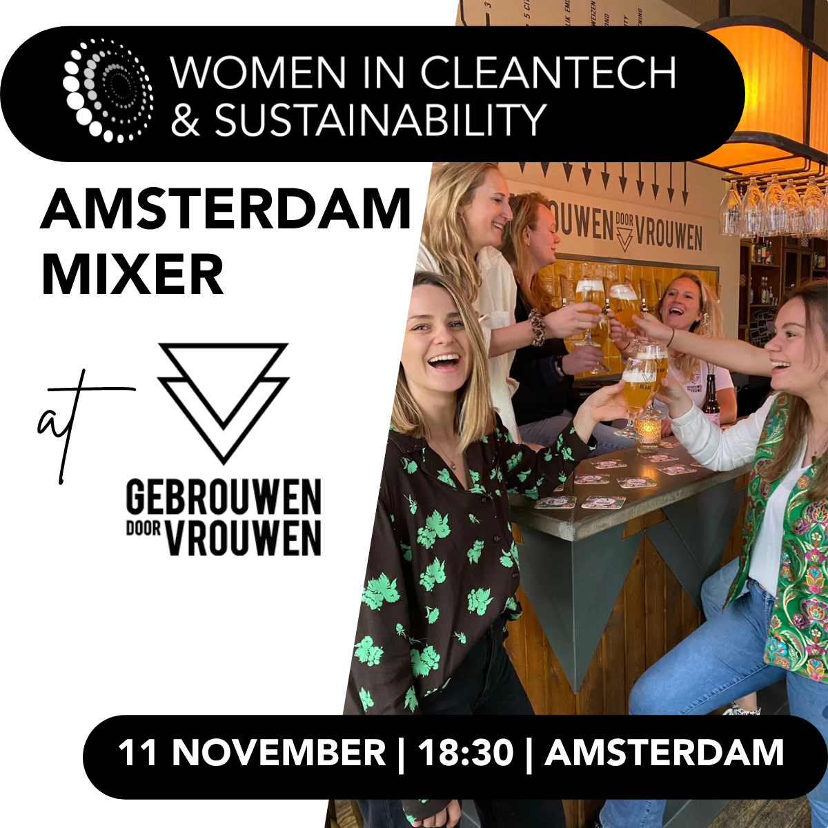 Gebrouwen door Vrouwen is a women-founded craft beer brewery from Amsterdam, started by two sisters with a passion for brewing and entrepreneurship. What began as a kitchen experiment has grown into a celebrated brand known for creative flavors, playful branding, and a commitment to quality. As a women-led business, Gebrouwen door Vrouwen champions inclusivity and representation in traditionally male-dominated industries. Their focus on community, collaboration, and sustainability aligns with the values of Women in Cleantech & Sustainability, making them an inspiring partner for this flagship Amsterdam event.